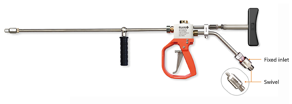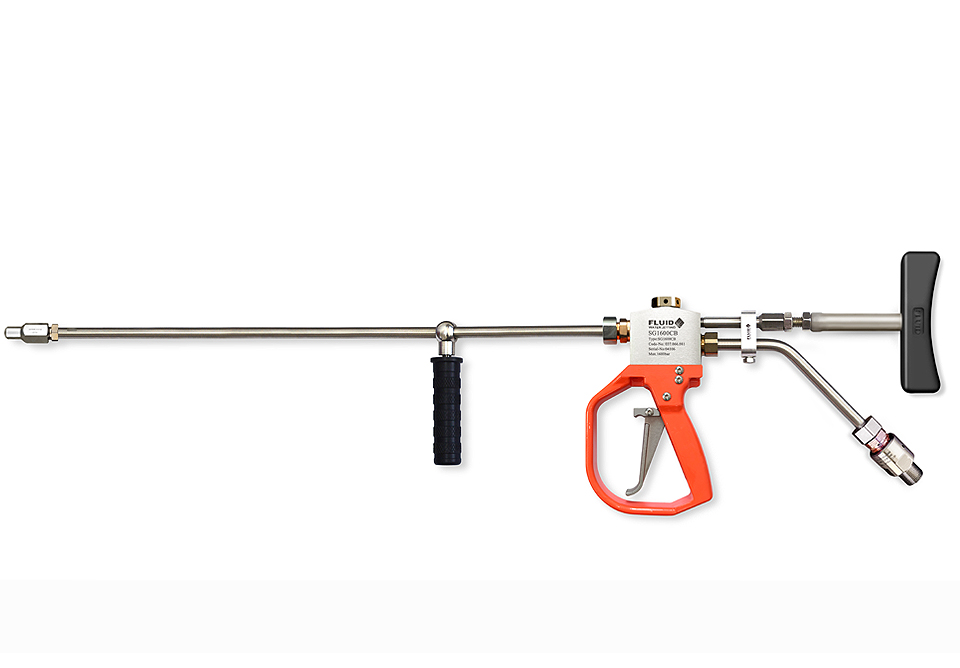 The hand-held dry shut-off type gun is used when remote dumping is required to keep discharge water in the blasting aera to a minimum.